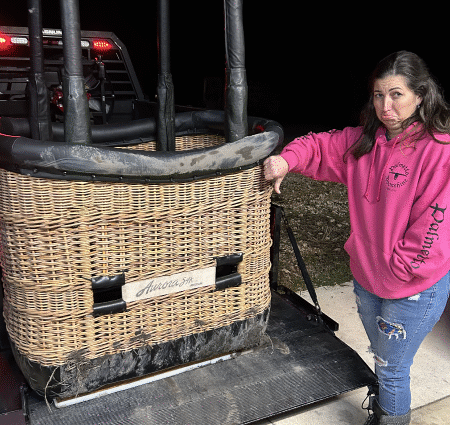 Well,  I guess so!.  This was a basket that had a complete rehab done to repair all the damage on the basket, add new poly skids and replace ALL the leather on the entire basket!  The before and after images are spectacular.  But.  This is Ballooning.  Ballooning is an outdoor contact sport!  In the winter and in the spring flights can get messy!  But it will all wash off!  The best part of ballooning is always the stories.  I am sure there is a great story behind this flight and recovery (and cleanup)!